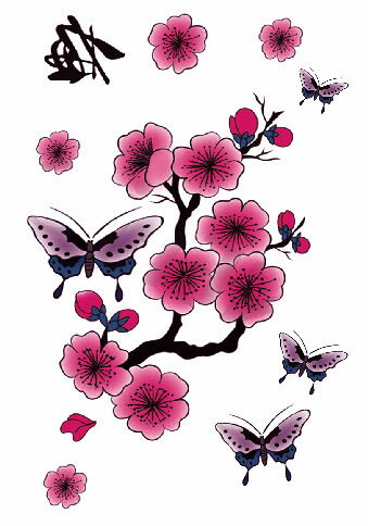 タトゥーシール ボディペイント 貼るTATOOの説明 色鮮やかな梅と蝶の絵柄のタトゥーシールです。