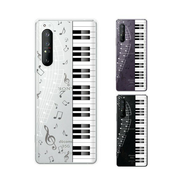 au ケース 【Xperia 1 II SOG01 / 10 II SOV43 / S5 SOV41 / 8 SOV42 / 1 SOV40 / XZ3 SOV39 / XZ2 SOV37】《純正卓上充電対応※一部機種》クリアデザインカバー ピアノ メロディ 音符 音楽 カワイイ スマホ ケース ハード カバー エクスペリア